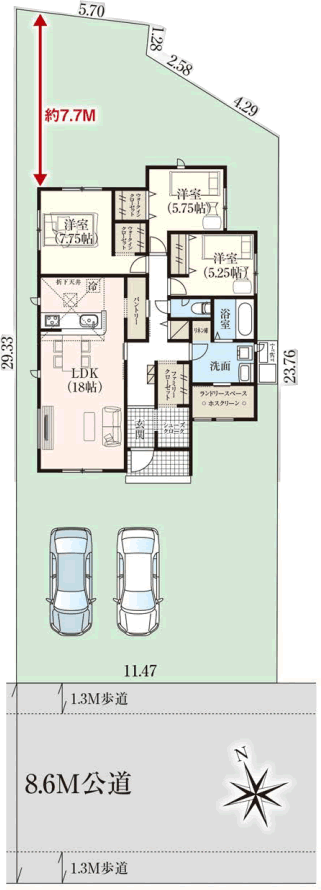 住宅性能表示7項目の最高等級を取得。第HPA-25-038985-1号。広々とした敷地にオール電化の平屋住宅。洗面室に隣接するランドリールームではホスクリーン設置で雨の日でも気持ちよく洗濯ものを干すことが出来ます。キッチン横にはパントリー有。至れりつくせりの間取りです。 |