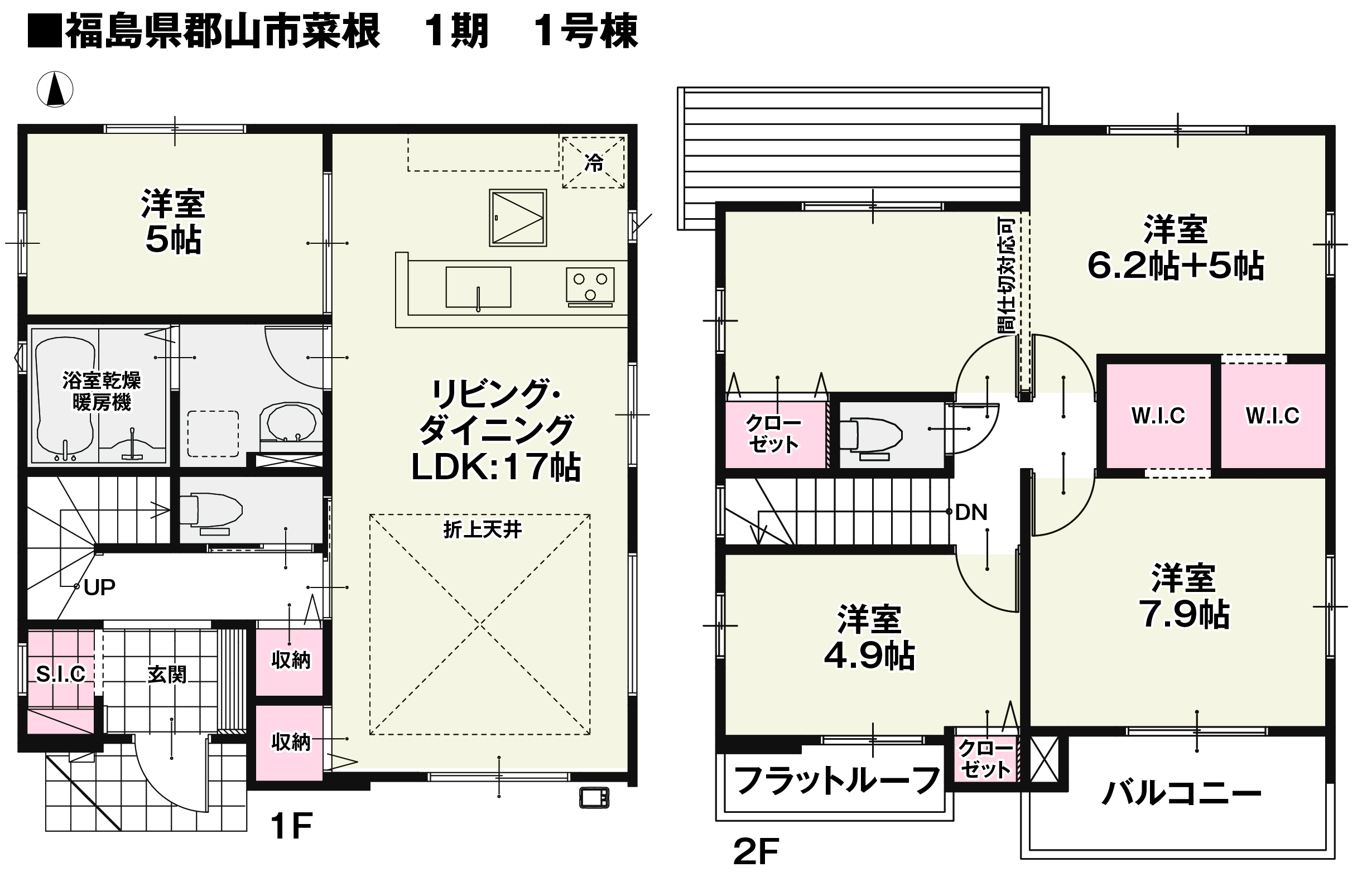 LIGARE-リーガレ:ラテン語の「結ぶ」。第HPA-25−023381-1号。全室洋室。閑静な住宅地。キッチン横に洋室5帖。2階の洋室11.2帖:ツードア仕様で壁を増設すると5LDKへ。2階にWICが二ヵ所と収納豊富 |